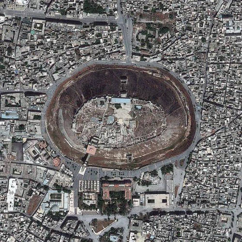 Kota Aleppo di utara Syria punya sebuah kastil lengkap dengan benteng raksasa. Inilah Citadel of Aleppo, yang disebut-sebut menjadi salah satu kastil terbesar dan tertua sedunia. Gambar ini diambil 26 Mei 2013. (kredit foto: DigitalGlobe/Getty Images)