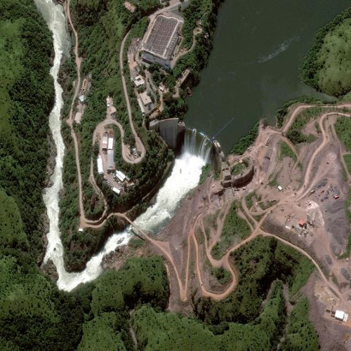 Ini adalah gambar satelit sebuah bendungan di Angola, yakni Cambambe Dam di Sungai Cuanza. Foto ini diambil pada 28 April 2013. (kredit foto: DigitalGlobe/Getty Images)