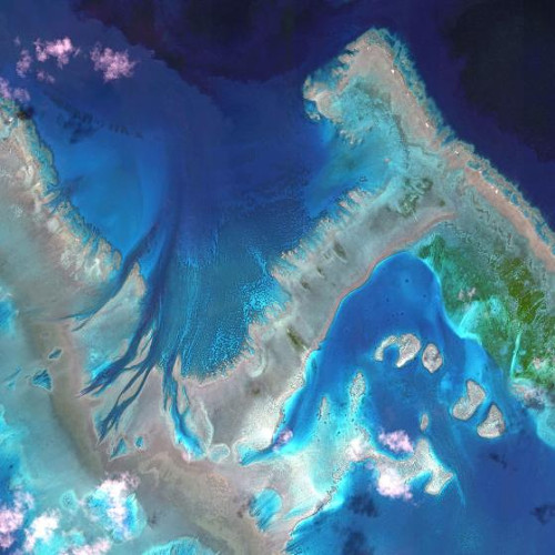 Schooner Cays, Kepulauan Bahama sebuah perairan dangkal tampak seperti lukisan. Foto ini diambil pada 26 Mei 2013. (kredit foto: DigitalGlobe/Getty Images)