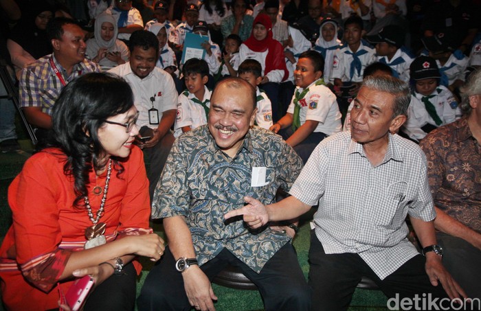 Sekjen PMI Ritola Tasmaya (tengah) bersama pengurus PMI Pusat H.Sumarsono (kanan) dan Linda Lukitasari sebelum peluncuran aplikasi Saifa dan Tanah di @america, Pasific Place, Jakarta, Selasa (19/1/2016). Dia aplikasi yang diberi nama Saifah dan Tanah itu bisa diunduh di Google Store dan App Store.