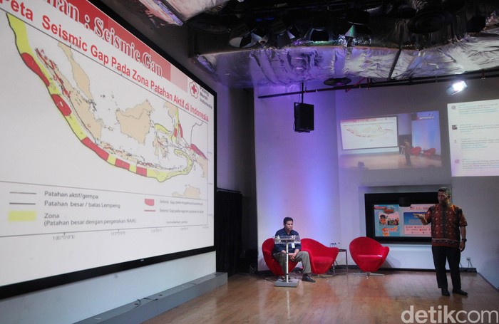 Presentasi tim PMI menunjukan wilayah Indonesia yang rawan gempa memerlukan siap siaga bencana sejak dini.