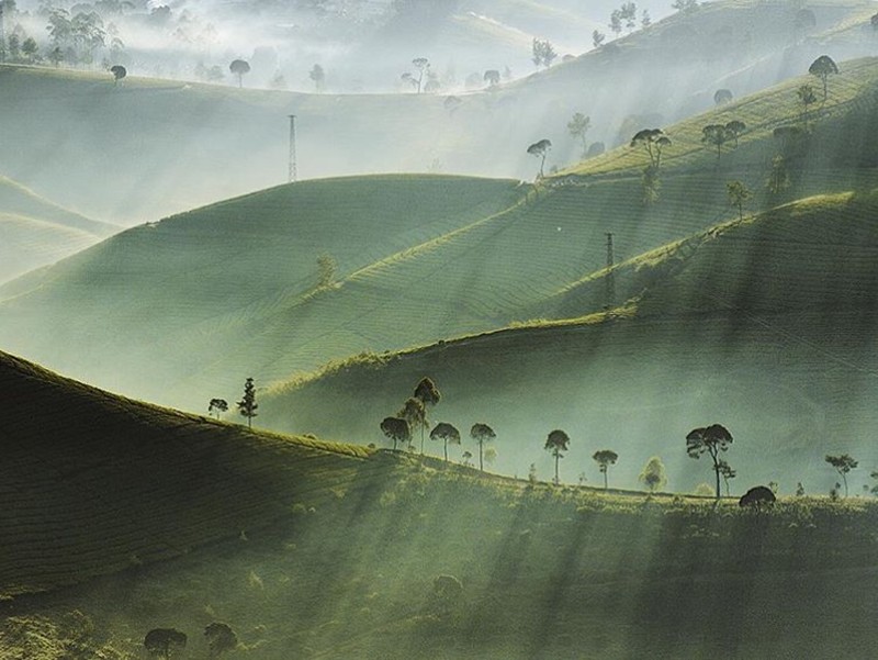 Suasana pagi yang syahdu di perkebunan teh sekitar Bandung. Foto: Ahmad Renaldi