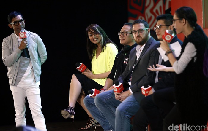 Hadir dalam acara tersebut Direktur Spotify Asia Sunita Kaur, CEO Indosat Ooredoo Alexander Rusli, Direktur Telco Partnership (ACAP) Alon Sobol dan Artis Shae di Potato Head Garage, Jakarta, Rabu (30/3/2016). Β