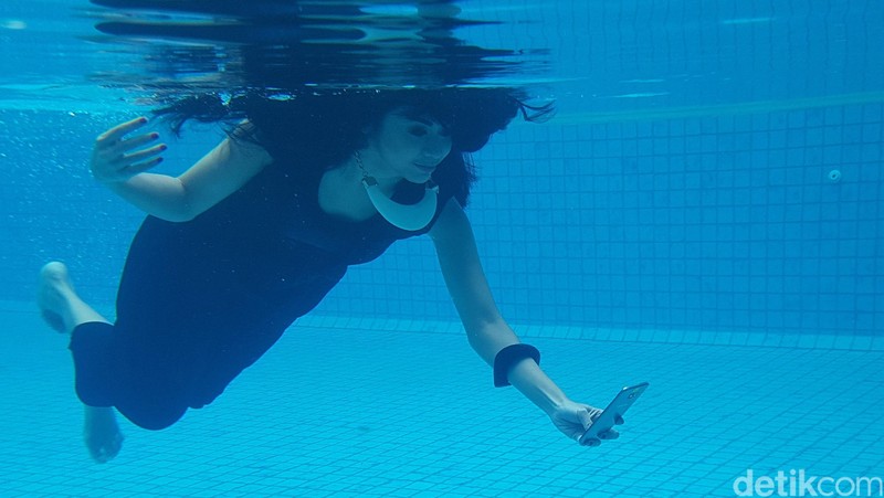 Namun perlu diingat, layar ponsel tak bisa digunakan saat berada di dalam air. Jadi pengguna harus menggunakan tombol volume sebagai tombol shutter.