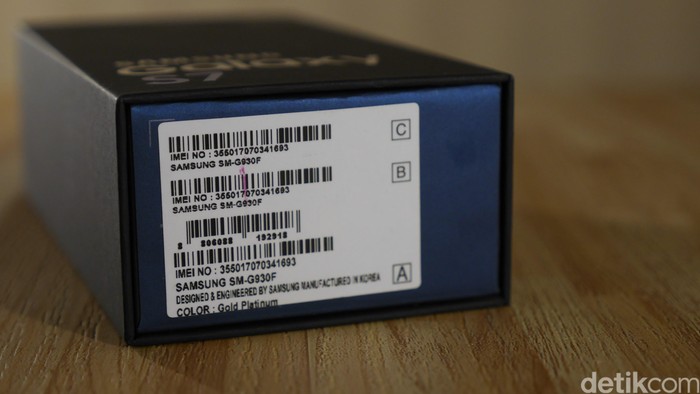 Sementara pada bagian bawah boks ada bermacam nomor seri dari ponsel, termasuk nomor IMEI. Foto: detikINET - Anggoro Suryo Jati