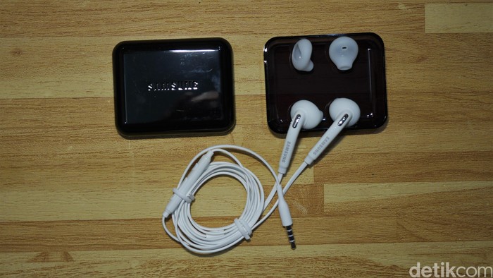 Earphone pada paket penjualan berwarna putih, bertipe in-ear, dan tersedia juga karet earphone cadangan. Foto: detikINET - Anggoro Suryo Jati