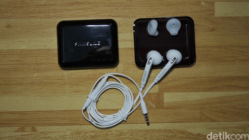 Earphone pada paket penjualan berwarna putih, bertipe in-ear, dan tersedia juga karet earphone cadangan. Foto: detikINET - Anggoro Suryo Jati