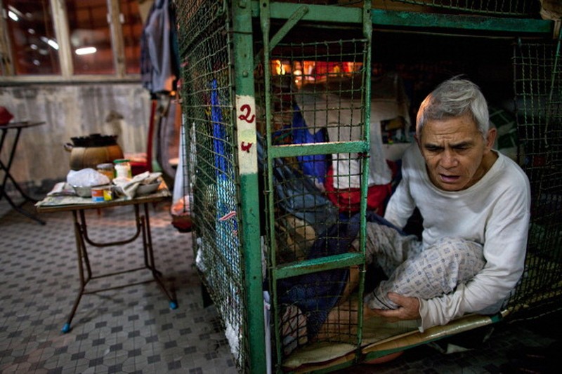Tak semua warga Hong Kong punya tempat tinggal yang layak. Beberapa manula bahkan harus rela hidup di tempat semacam ini. Foto: Getty Images