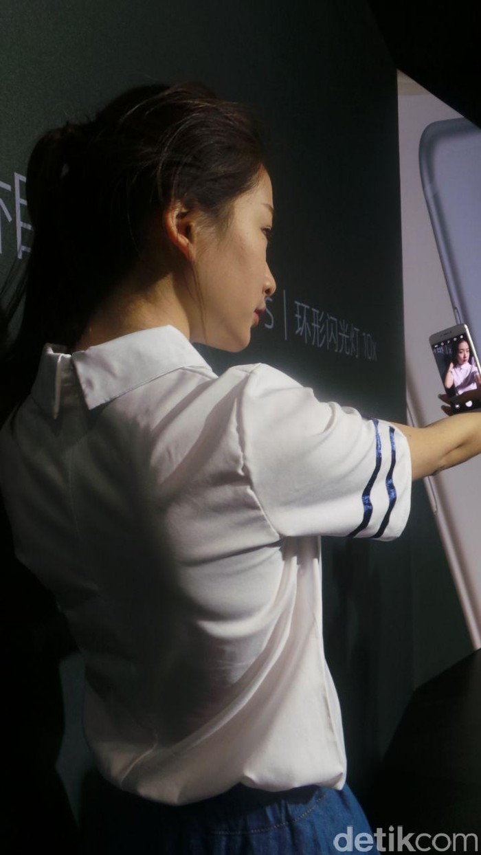 Kameranya sendiri berukuran 21 megapixel di bagian belakang dan dilengkapi dengan 10 LED yang dibuat selingkar seperti cicin. Foto: detikINET/Rini Friastuti