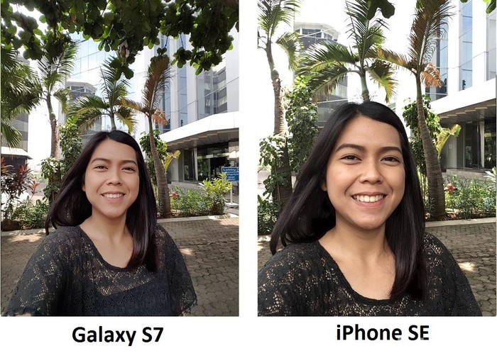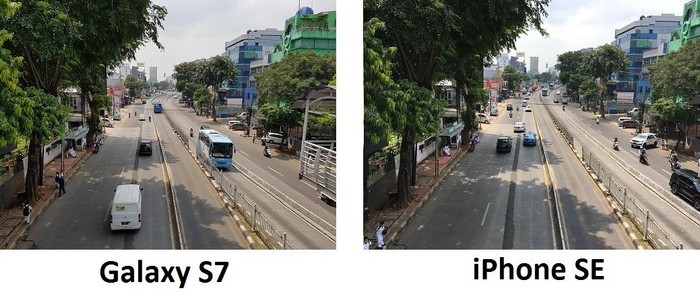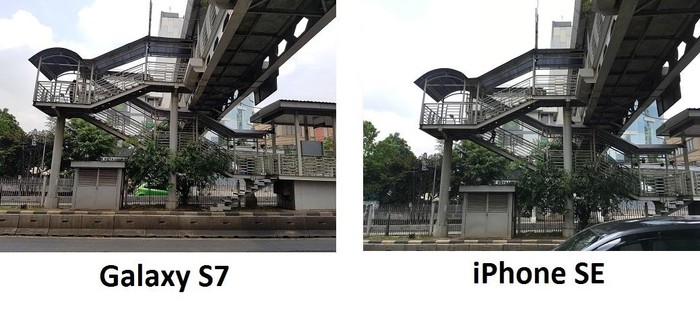 Galaxy S7 mampu menangkap detail lebih baik ketimbang iPhone SE saat memotret di luar ruang. Foto: detikINET/afr