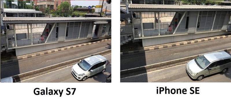 Galaxy S7 mampu menangkap detail lebih baik ketimbang iPhone SE saat memotret di luar ruang. Foto: detikINET/afr