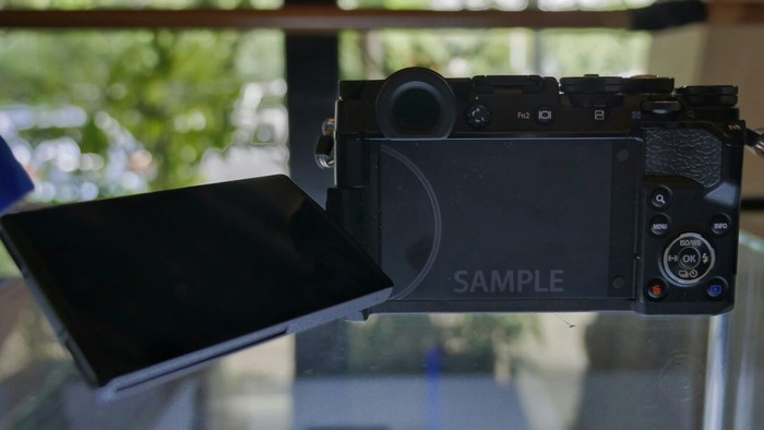Juga seri Pen pertama yang dilengkapi dengan electronic viewfinder (EVF), yaitu panel OLED 2,36 juta pixel. Foto: detikINET/Anggoro Suryo Jati