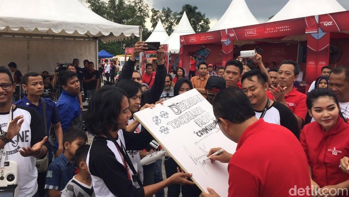 "Kami ingin mengajak masyarakat dan berbagai komunitas di Tasikmalaya dapat melihat lebih dekat drone berukuran besar yang menangkap keindahan Indonesia di jalur Barat dari udara," kata Hasan. Foto: detikINET - Adi Fida Rahman