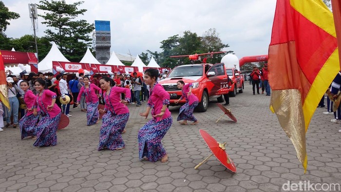 Elang Barat pun lantas diarak dari Pangkalan Udara (Lanud) TNI AU Wiriadinata menuju lapangan Dadaha yang menjadi pusat kegiatan. Di sepanjang jalan, drone Elang Barat dikawal oleh sejumlah komunitas otomotif, diantaranya Komunitas Yamaha R25 Owners Indonesia (YROI PRIANGAN TIMUR), Komunitas Datsun Go Club Indonesia (DGCI), Komunitas Vespa (MOVE), Komunitas CBR Club Indonesia Region Tasikmalaya, dan Komunitas Blazer Indonesia Club Rayon Tasikmalaya (BAYONET). Foto: detikINET - Adi Fida Rahman