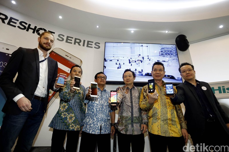 Head of Retail Lazada Pierce Beckers, Senior Director & Country Manger Indonesia QUALQOM Shannedy Ong, Perwakilan Dirjan SDPPI Rudi Hendarwin, CEO PT Parastar Echorindo Harry Hartono, Dirut PT Satnusa Persada Tbk Abidin, dan Sales Director PT Hisense International Indonesia Stanley Widjaja hadir dalam peluncuran smartphone Kingkong II.