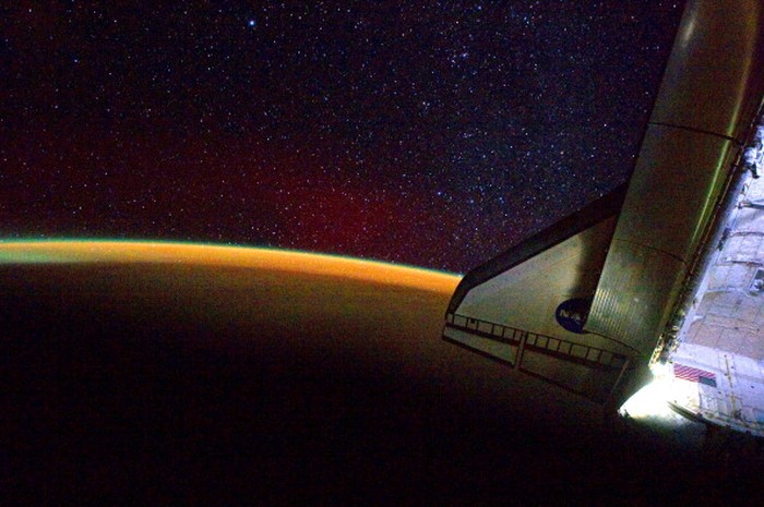 Foto dramatis bumi dilihat dari ISS dan juga menampakkan pesawat ulang alik Endeavour. Foto: Getty Images