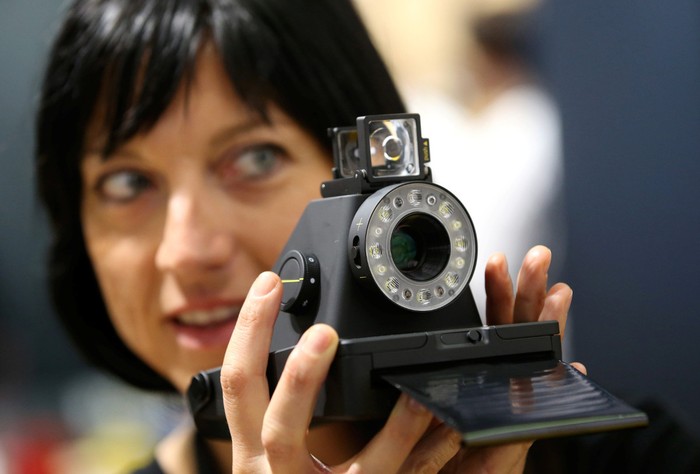 Wanita ini mengambil gambar dengan kamera analog instan Impossible I-1. Foto: Reuters