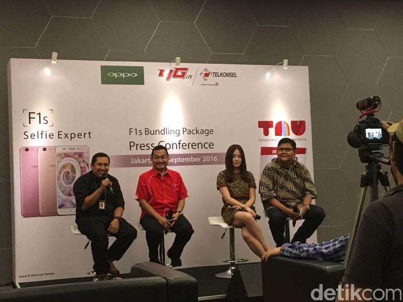 Dalam program bundling terbarunya, Telkomsel bersama Oppo kembali menggelar promo spesial bundling F1s. Paket bundling smartphone 4G seharga Rp 3.799.000 ini memberikan kuota data super besar 14 GB. Foto: detikINET/Achmad Rouzni Noor II