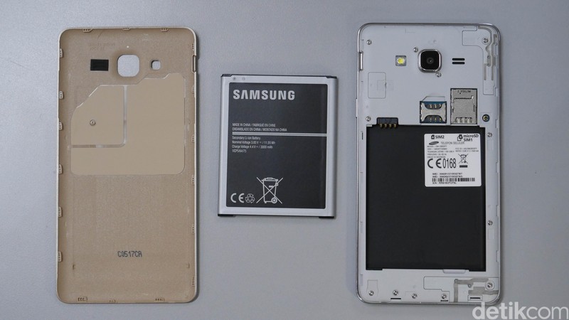 Galaxy On7 ini dilengkapi dengan nama duos, yang menunjukkan bahwa ponsel ini bisa menampung dua buah sim card. Foto: detikINET - Anggoro Suryo Jati