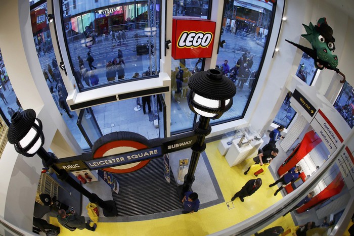 Lego store berada di jantung kota London tepatnya terletak di Leicester Square London, Inggris. Foto: Reuters/Stefan Wermuth