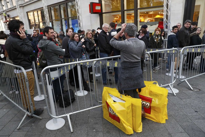 Antrean panjang dari berbagai usia ikut meramaikan pembukaan perdana Lego store di london. Foto: Reuters/Stefan Wermuth