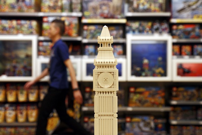 Big Ben Lego, yang merupakan ikon kota London. Foto: Reuters/Stefan Wermuth
