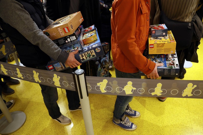 Antrean pembeli yang tak sabar merakit lego. Foto: Reuters/Stefan Wermuth