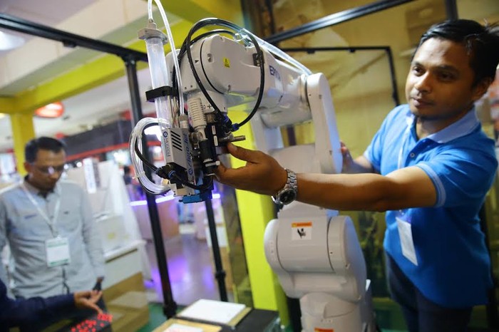 Epson meluncurkan C8 series, robot industrial 6-axis terbarunya di Jakarta International Expo Kemayoran. Robot ini juga bisa disuruh untuk menyuguhkan minuman.