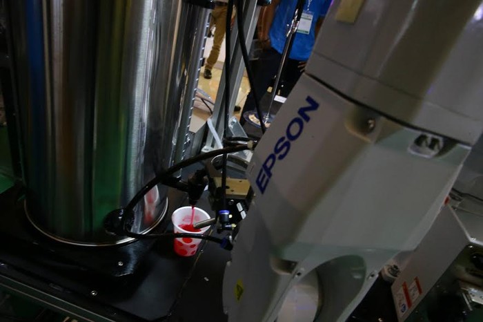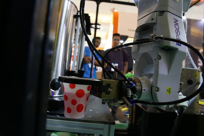 Jakarta - Epson meluncurkan C8 series, robot industrial 6-axis terbarunya di Jakarta International Expo Kemayoran. Robot ini juga bisa disuruh untuk menyuguhkan minuman.