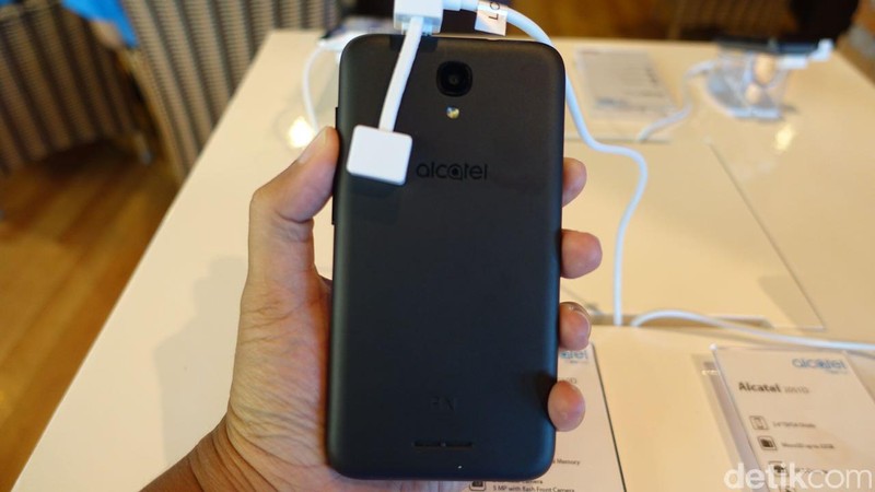 Alcatel turut menyematkan RAM 1 GB dan ruang penyimpanan internal 8 GB. Kameranya sendiri 5 MP di depan dan 8 MP di bagian belakang. Foto: Adi Fida Rachman/detikINET
