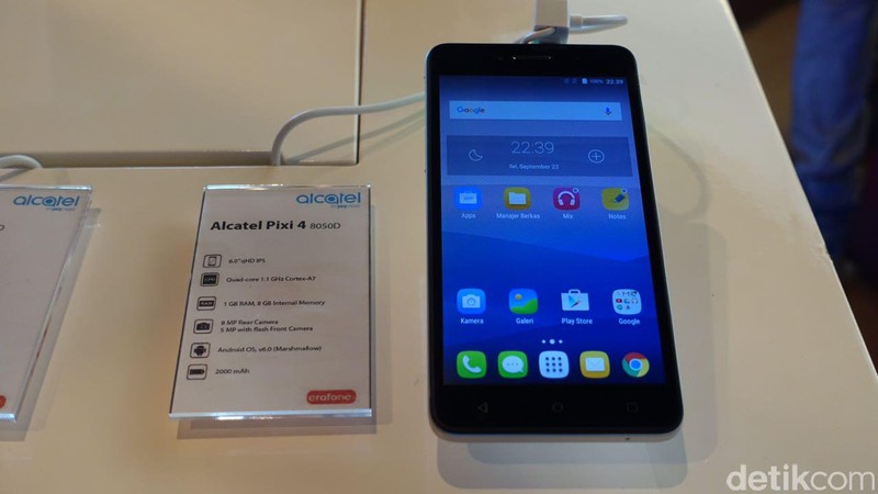 Alcatel menyiapkan dua smartphone dan dua feature phone yang dibawa perusahaan asal Perancis ini. Perangkat smartphone yang dirilis adalah PIXI 4 dengan varian 5010D dan 8050D. Foto: Adi Fida Rachman/detikINET