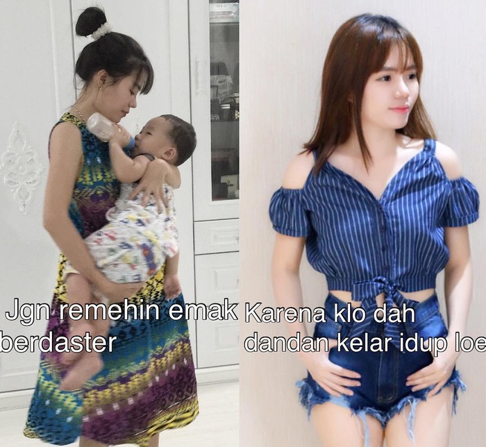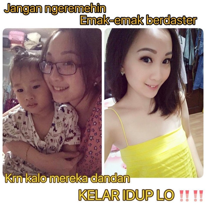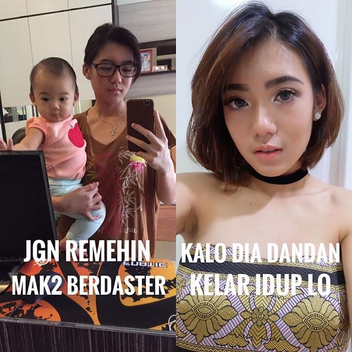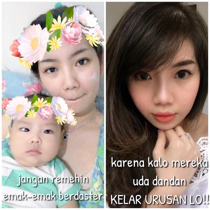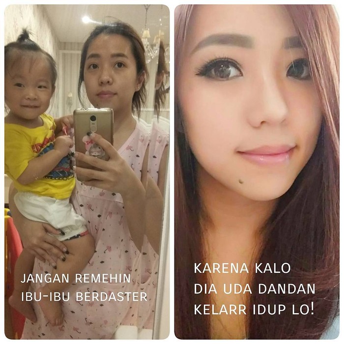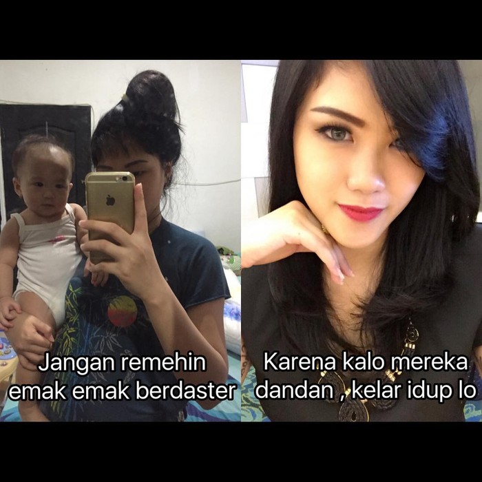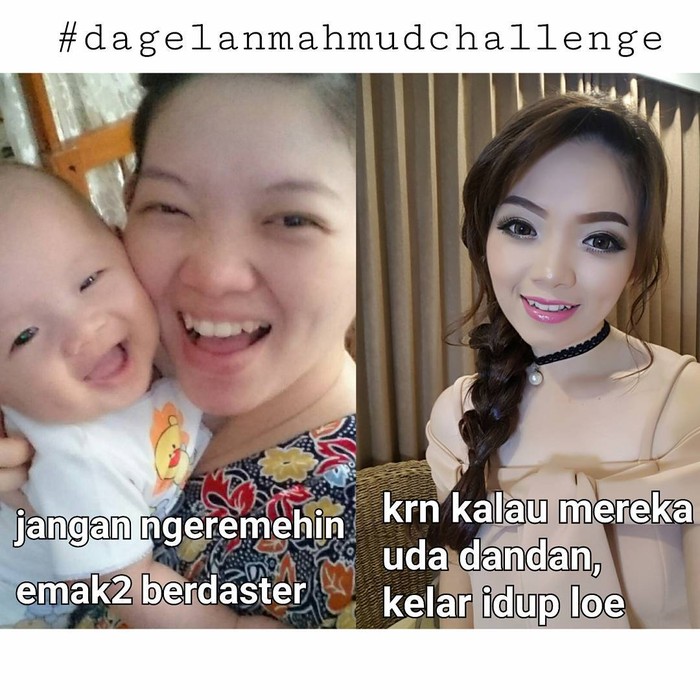 Jakarta - Sejumlah ibu-ibu muda di Tanah Air mengikuti #mahmudchallenge di media sosial. Mereka memposting foto perbandingan saat berdaster dengan setelah berdandan.