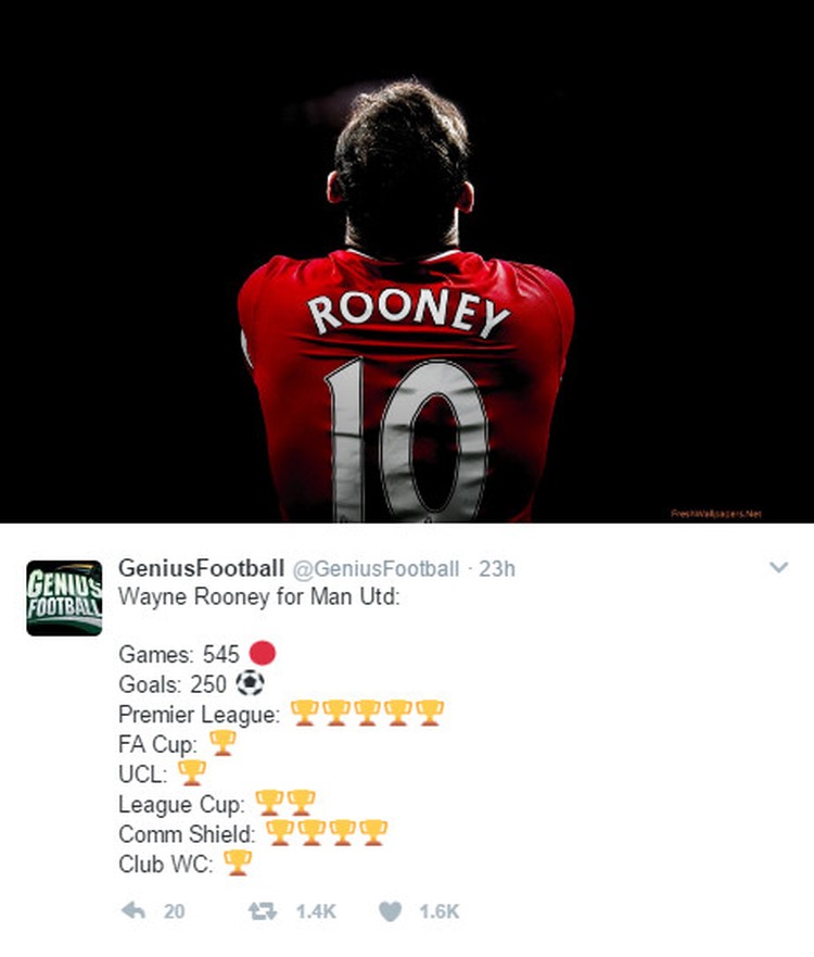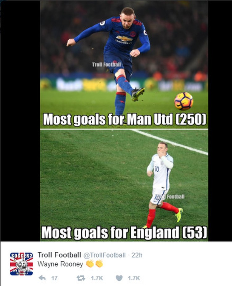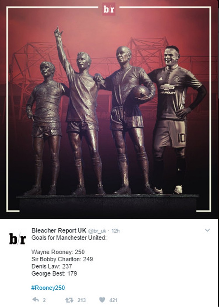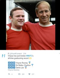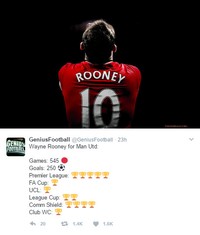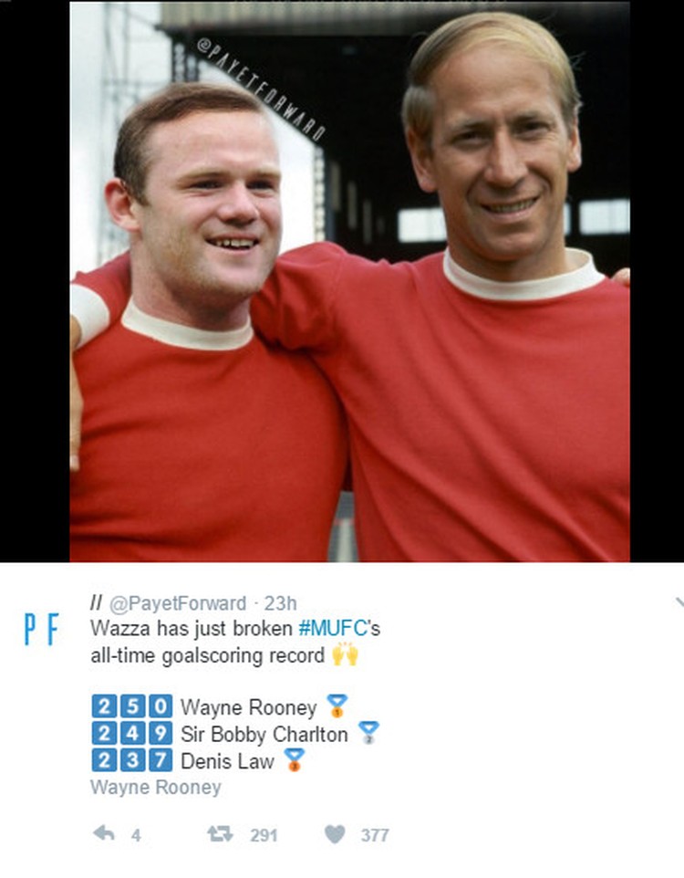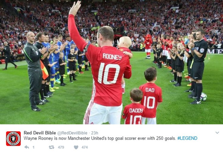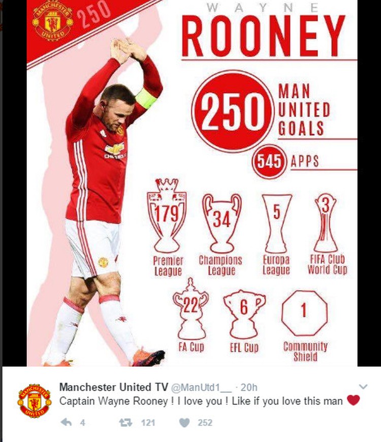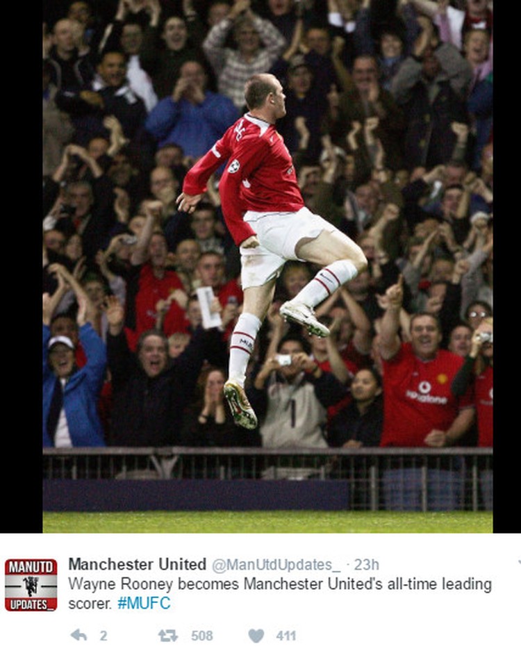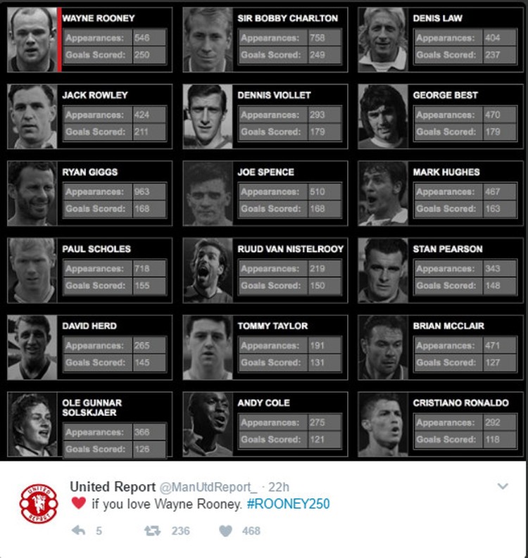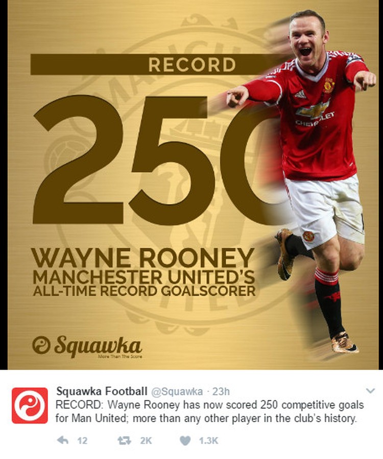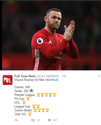 Wayne Rooney sukses menjadi top skor Manchester United sepanjang masa setelah mencetak gol ke-250. Ucapan selamat pun mengalir dari netizen.