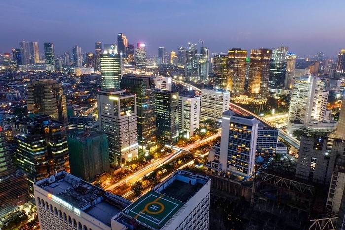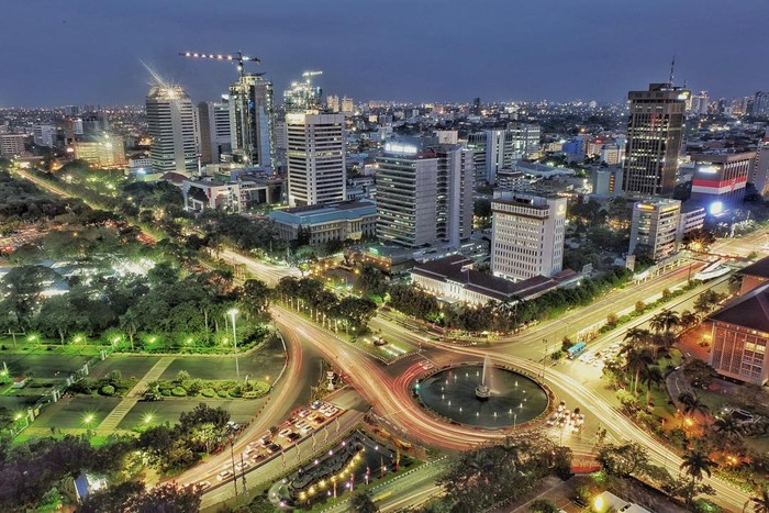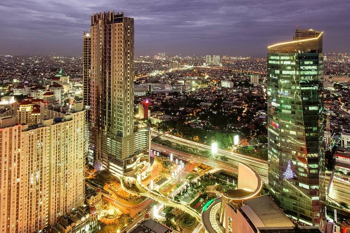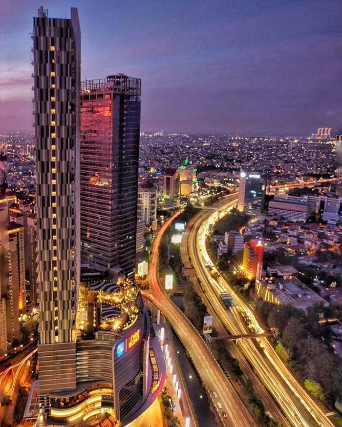 Saat petang datang, Jakarta berubah mengkilau. Lampu-lampu gedung pencakar langit mampu mengubah wajah ibukota menjadi begitu memesona.