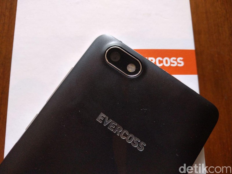 Untuk mengakomodir kebutuhan fotografi, Evercoss menyematkan kamera utama 8 MP dan kamera depan 5 MP. Baik kamera utama maupun depan sudah dilengkapi dengan lampu flash. (Foto: detikINET/Muhammad Alif Goenawan)