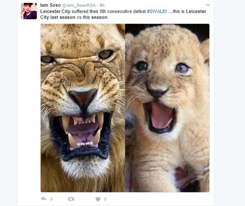 Kemarin mengaum begitu garang, kini laksana cuma anak macan. Leicester baru saja dikalahkan Swansea 2-0. Foto: Istimewa