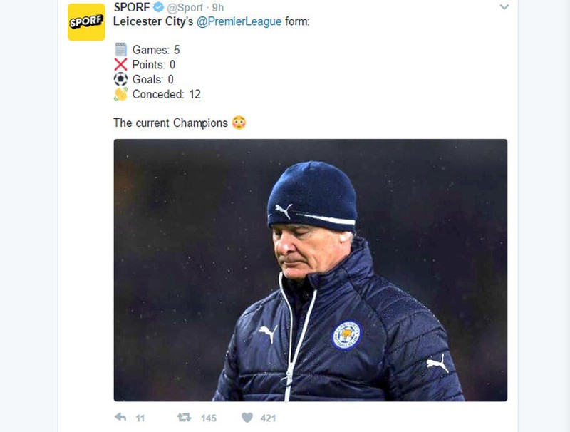 Beginilah prestasi payah Leicester tahun ini. Foto: Istimewa
