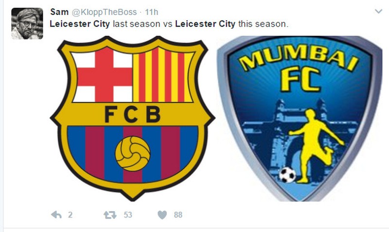 Netizen ini mengibaratkan tahun lalu Leicester seperti Barcelona, tahun ini seperti Mumbai FC, klub tak terkenal asal India. Foto: Istimewa