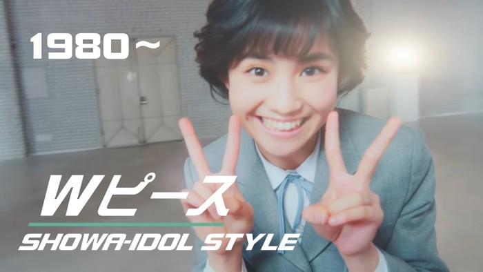 Era 80-an atau dikenal dengan era Showa ini menjadi lahirnya foto dengan simbol jari peace (simbol dua jari). Foto: screenshot YouTube