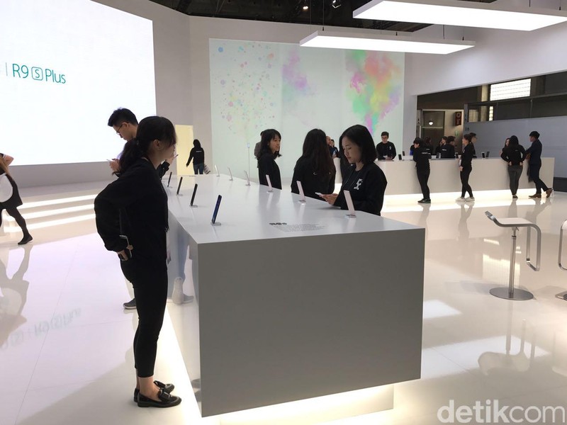 Tampak para staff Oppo mengenakan baju warna hitam-hitam. (Foto: detikINET/Adi Fida Rahman)