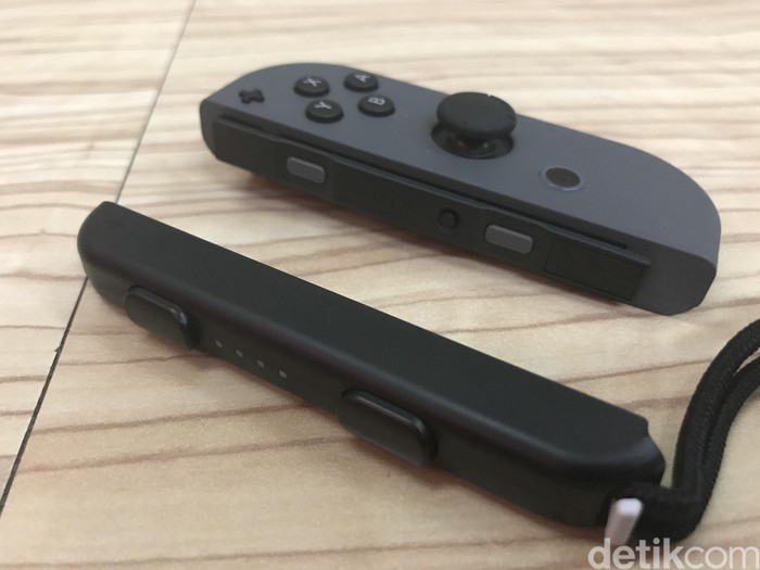 Kontroler Joy-Con yang jadi salah satu ciri khas Switch. Nintendo juga menyiapkan semacam pelengkap yang selain memberikan tambahan tombol, juga sebagai strap untuk digantungkan di pergelangan tangan. Foto: afr/detikINET