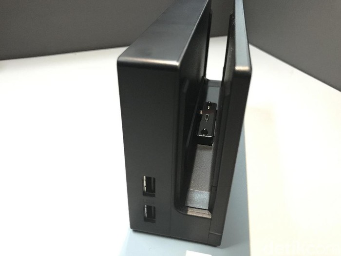 Inilah docking untuk switch. Kelengkapan ini berguna ketika gamer ingin menampilkan game di Switch ke layar yang lebih besar. Foto: afr/detikINET