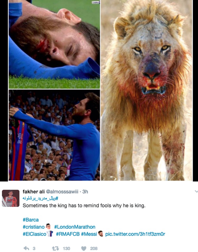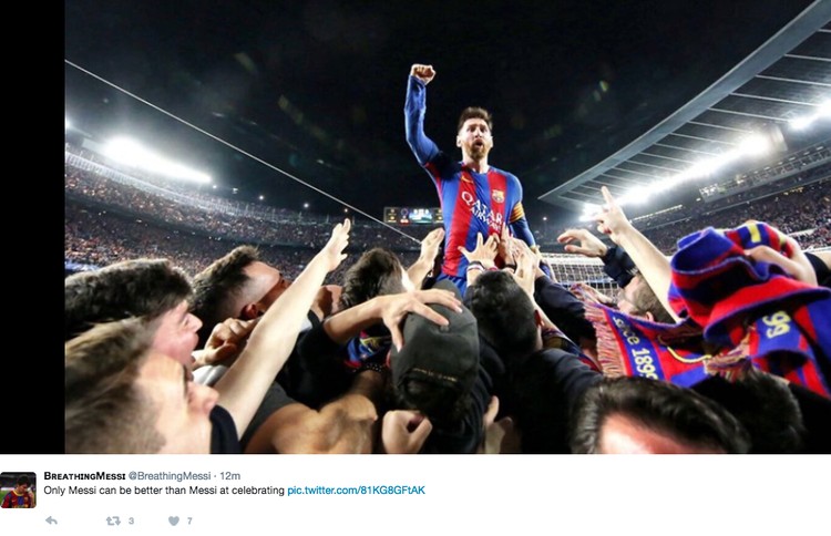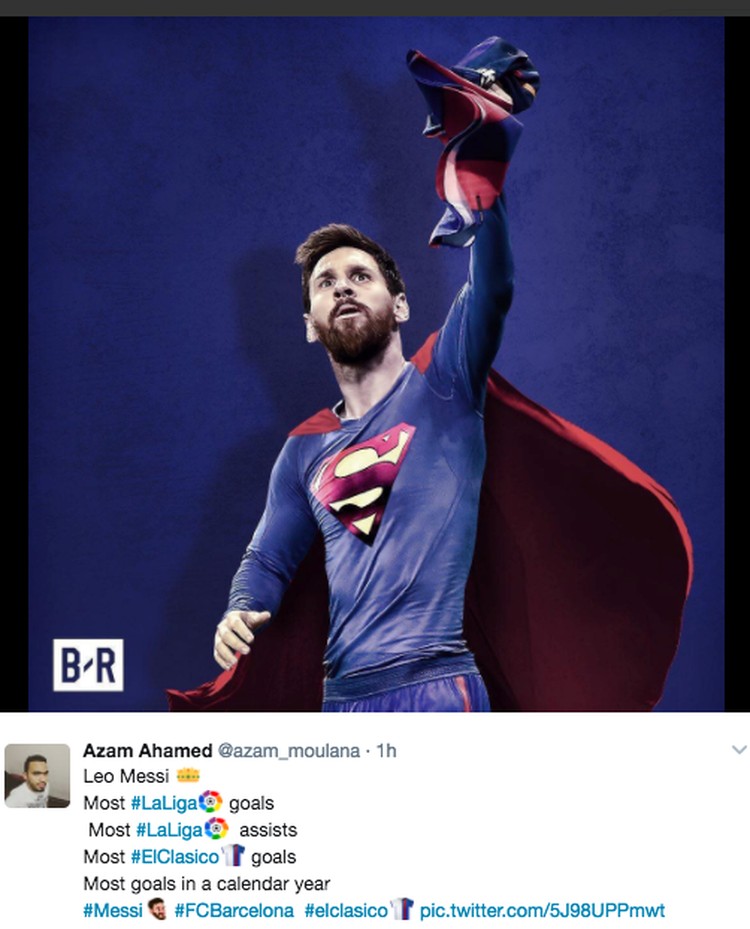 Jakarta - Messi jadi aktor kekalahan Real Madrid dari Barcelona dengan dua gol sekaligus total mencetak 500 gol bagi Barca. Ini pujian setinggi langit netizen untuknya.