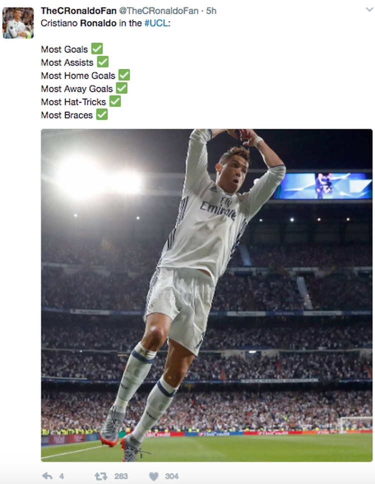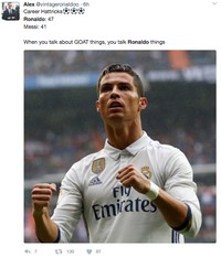 Jakarta - Cristiano Ronaldo belum kehilangan tajinya dan melesakkan 3 gol ke gawang Atletico Madrid. Netizen pun menyambutnya dengan meme dan kata-kata pujian.