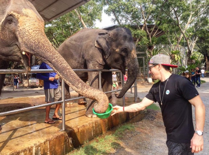 Saat memberi makan gajah. Foto: Instagram