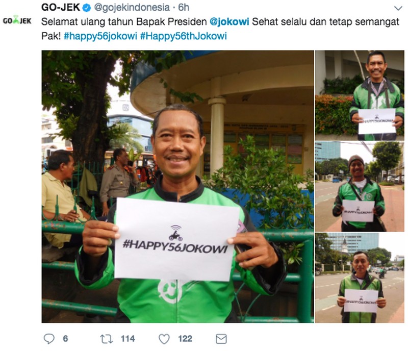 Akun Go-Jek mengucapkan selamat ultah pada presiden. Foto: istimewa