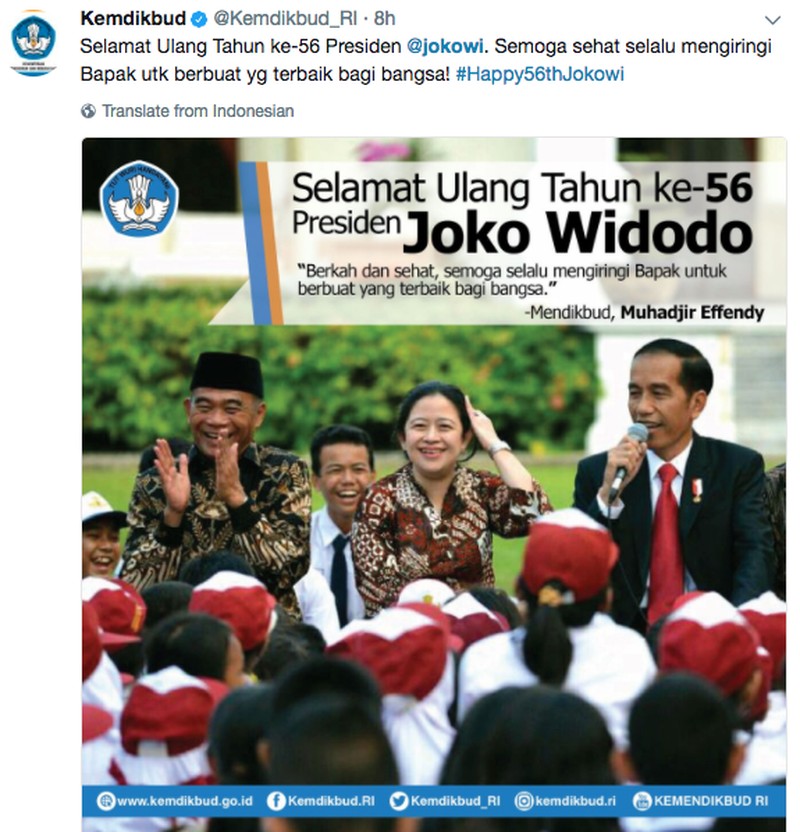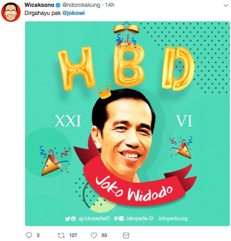Hashtag #Happy56thJokowi pun sempat menembus trending topic. Foto: istimewa
