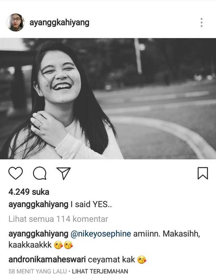 Kahiyang Ayu, putri Presiden Jokowi, gemar berbagi cerita lewat foto dan video di Instagram. Termasuk ketika ia memutuskan untuk menerima pinangan sang kekasih.