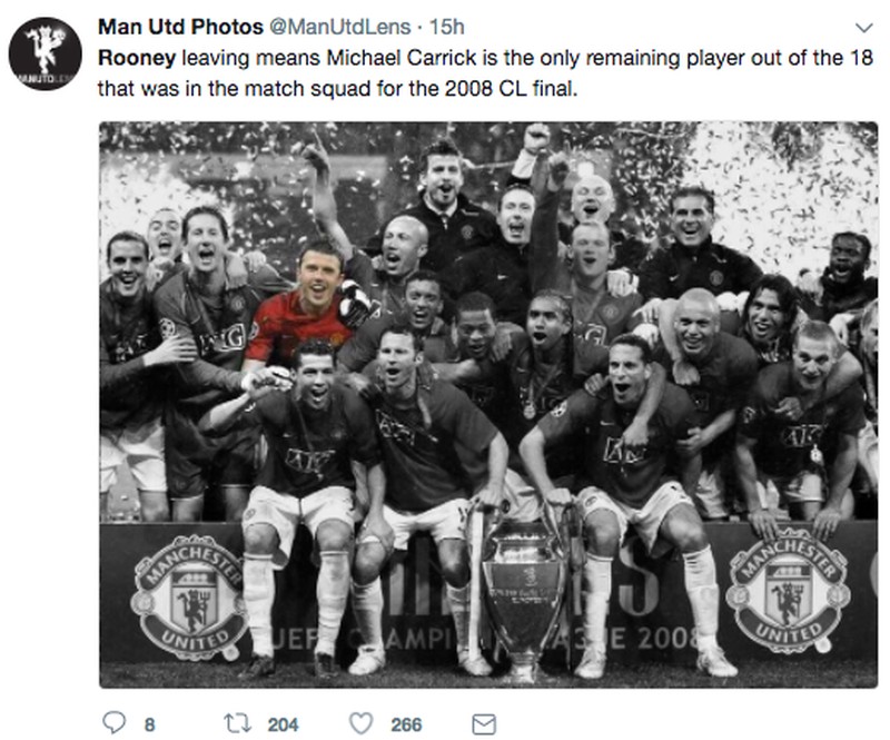 Setelah Rooney pergi, hanya Michael Carrick yang tersisa di skuat ini. Foto: istimewa