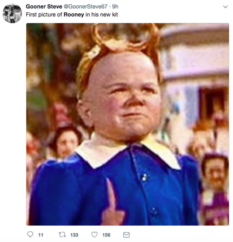 Meme lucu dengan caption 'Foto pertama Rooney dengan kostum barunya. Foto: istimewa